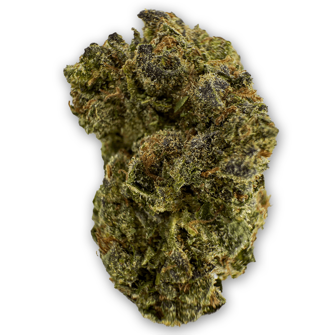 “Sunset MAC, also known as “Sunset Miracle Alien Cookies” or “Sunset M.A.C.,” is an evenly balanced hybrid strain (50% indica/50% sativa) created through crossing the iconic Alien Cookies X (Colombian X Starfighter) X Sunset Sherbet strains. If you’re after a super tasty bud with a soaring high that will last for hours on end, you’ve found it with Sunset MAC. This bud packs a sweet and fruity tropical citrus taste accented by hints of nutty earthiness and a touch of flowery lavender. The aroma is very similar, with a flowery lavender overtone accented by a punch of sour citrusy lemon and fruity berries. The Sunset MAC high will hit you as soon as you exhale, rushing through your brain with a sense of lifted happiness that has you soaring for hours on end. You’ll feel focused and creative, ready to jump on any task at hand, whether it’s artistic or more focused like math homework. A calming physical sense rounds out the high, helping to keep you settled. Thanks to these effects and its super high 17-29% average THC level, Sunset MAC is often chosen to treat a variety of conditions including chronic stress or anxiety, depression or mood swings and chronic pain. This bud has oversized and fluffy heart-shaped dusty green nugs with golden undertones, lots of thin orange hairs and chunky, golden amber crystal trichomes.” — allbud